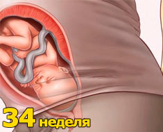 Copil.În ultimele săptămâni de viață în pântece, puful începe să dispară la copil. Pielea devine roz și netezită datorită grăsimii subcutanate. Obrajii devin mai plini, acest lucru va ajuta în viitor să primească mâncare în cantitatea potrivită. Lichidul amniotic capătă o consistență lipicioasă și vâscoasă. Organele interne continuă să se îmbunătățească. Greutatea copilului este de 2400-2600 g, lungime - 47 cm.