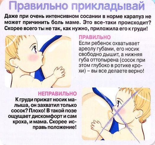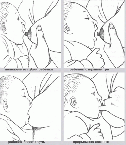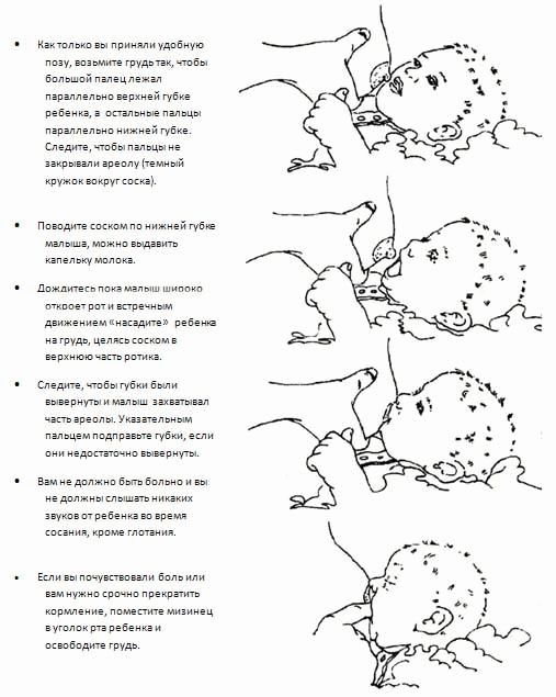 - Amintiți-vă, copilul trebuie să ia singur sfarcul. Nu e nevoie să-l pui în gură. În caz contrar, vor fi asigurate toate aceleași confiscări greșite și problemele care urmează. Dacă bebelușul a apucat doar vârful sfârcului, atunci prin apăsarea ușoară a bărbie, mama se poate elibera întotdeauna.