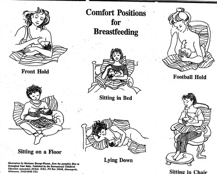 - Alegeți o poză confortabilă, având în vedere că hrănirea poate dura destul de mult și nu trebuie să fiți obosit. Este posibil să hrănești copilul în diferite poziții și, de regulă, fiecare femeie alege pentru sine ceea ce îi place. Însă copilul pe parcursul întregului proces trebuie să fie pe burtă către mama sa, iar fața lui trebuie să fie întoarsă spre sfârc. În plus, capul bebelușului nu trebuie să fie fixat rigid, astfel încât să poată regla poziția sfârcului în gură și să-i poată informa mama despre sfârșitul hrănirii (Material din fotografie și video despre diverse poze pentru hrănire);