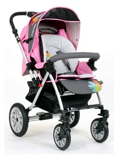 Căruciorul cu patru roți este așezat cu încredere pe cele patru roți ale sale. Sunt confecționate din cauciuc, diametrul roților din față este de 17 cm, roțile din spate sunt de 20 cm, ceea ce este suficient pentru a depăși obstacolele ușor dificile. Roțile pivotante sunt ușor de blocat. Există tot felul de modalități de a împiedica copilul să alunece din cărucior: centurile de siguranță în cinci puncte, o bara de protecție cu partea superioară și un suport pentru picioare reglabil.