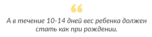 Du kommer att förstå detta genom att öka babyens vikt och blöjornas innehåll. Oroa dig inte för hur länge barnet sover, hur länge intervallerna mellan matningen varar. Viktökning och innehållet i blöjor kommer att berätta allt. Det är också viktigt att notera att hans urin ska bli senapgul 5 dagar efter att smulorna uppträder i ljuset. Under 10-14 dagar återhämtar spädbarn vikten som föddes.