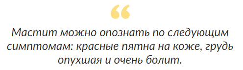 Om mastit redan har utvecklats kan det misstänkas av röda fläckar i huden, svullna och mycket smärtsamma bröst.