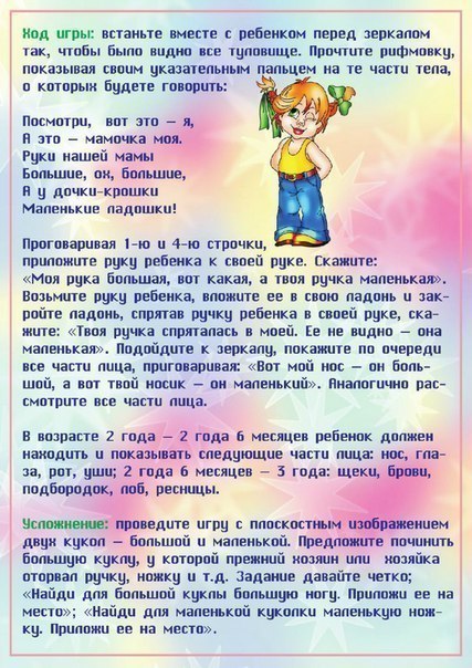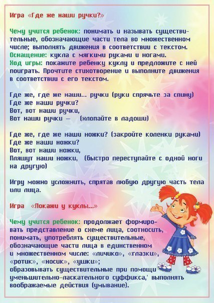 En serie didaktiska spel för barn som presenteras på denna sida på webbplatsen syftar till att studera olika delar av människokroppen. Varje spel åtföljs av roliga rim som förklarar hur våra kroppsdelar är ordnade. Barnet kommer att lära sig att böja fingrarna, bestämma ögonfärgen (spelet "Vem har de blå ögonen?"), Lära sig händer, fötter, mage, ansikte, näsa, öron och kan visa dem på en docka (visa "Visa på en docka ..." -spel) eller mjuk en leksak (djur, människa). Spel är mycket användbara för utvecklingen av barnet, dessutom kommer barnet att vara mycket roligt och intressant!