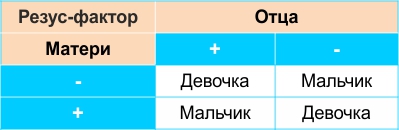 - anne ve babanın rhesus kanı aynı ise - büyük olasılıkla bir kızı gebe bırakmak için ortaya çıkacaktır;