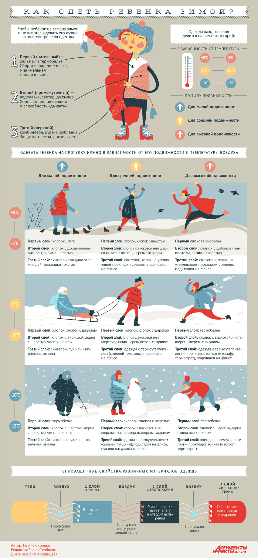 Tüm ebeveynler aşırı ısınma ve müteakip hipotermiden bebeğin üşütebileceğini anlar. Bu nedenle, çocuğu kışın giydirmek gerekir, böylece soğuk değildir, aynı zamanda terlemez. Farklı sıcaklıklar için kıyafetler hakkında size öneriler hazırladık, böylece kırıntıların kırılgan sağlığını koruyabilir ve birçok problemden kaçınabilirsiniz.