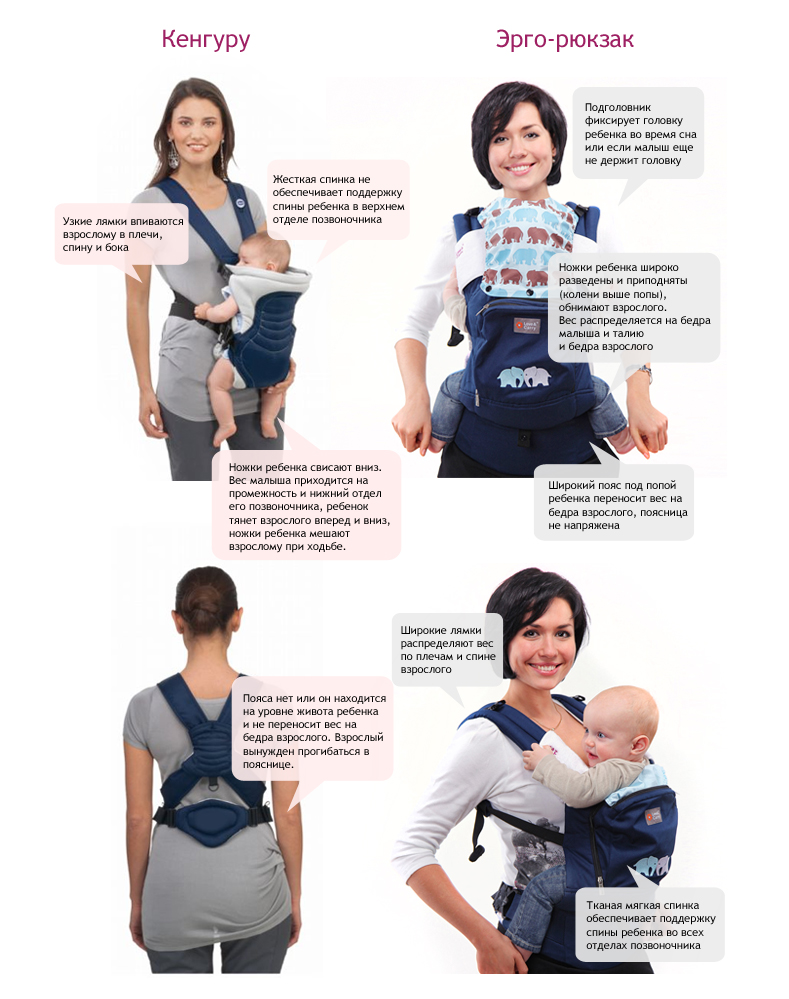 Un modèle amélioré de sac à dos kangourou: le corps du bébé prend la bonne position et la charge dorsale de la mère est réduite. En plus des positions habituelles du bébé derrière ou devant maman, il y a une option sur le côté. L'utilisation d'un sac à dos ergo sans le retirer est préférable de ne pas dépasser 4 heures par jour.