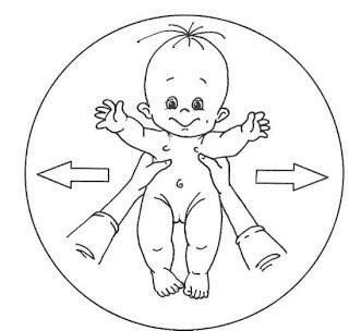 Au fond, cet exercice répète le précédent, seul l'enfant est allongé sur le dos.Pour effectuer cet exercice, vous devez vous assurer que la tête du bébé ne bascule pas.
