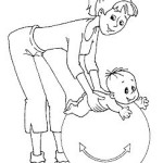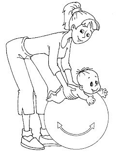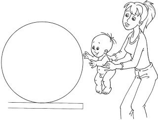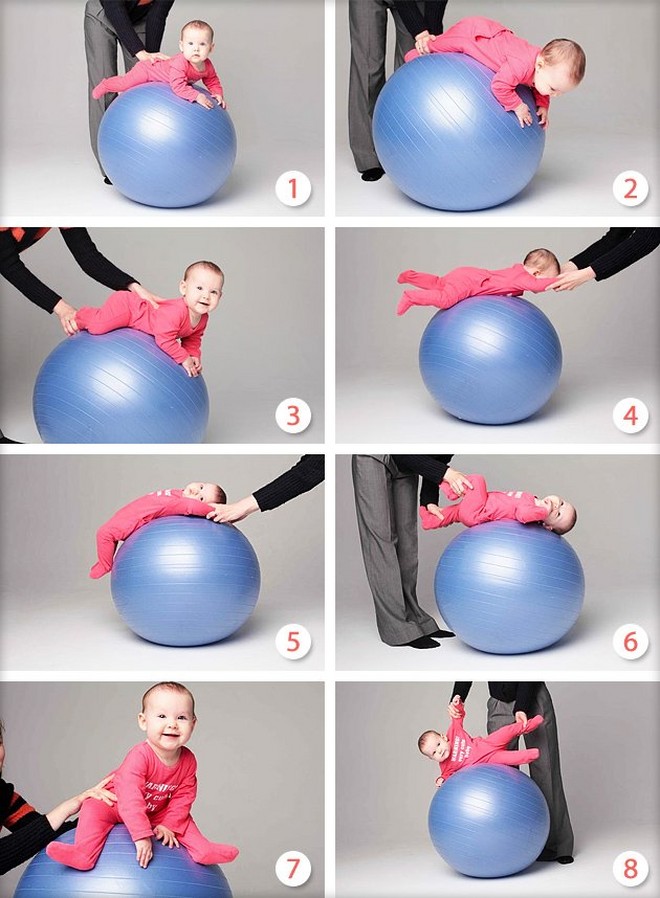 Assis sur le sol, nous tenons le fitball entre les jambes pour qu'il ne puisse pas rouler. Nous mettons le bébé sur la fitball et, en tenant par le dos, montrons comment vous pouvez sauter et sauter. Habituellement, cet exercice provoque beaucoup de rires et de joie.